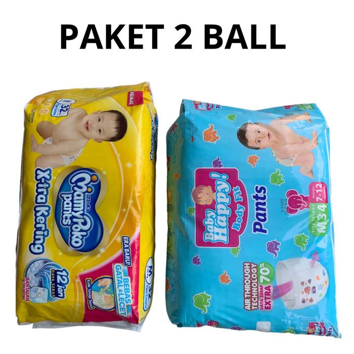 PROMO 2 BALL POPOK BAYI BABY HAPPY MAMY POKO MURAH PAKET 2 BALL Diapers popok bayi - M 2 BALL BABY HAPPY