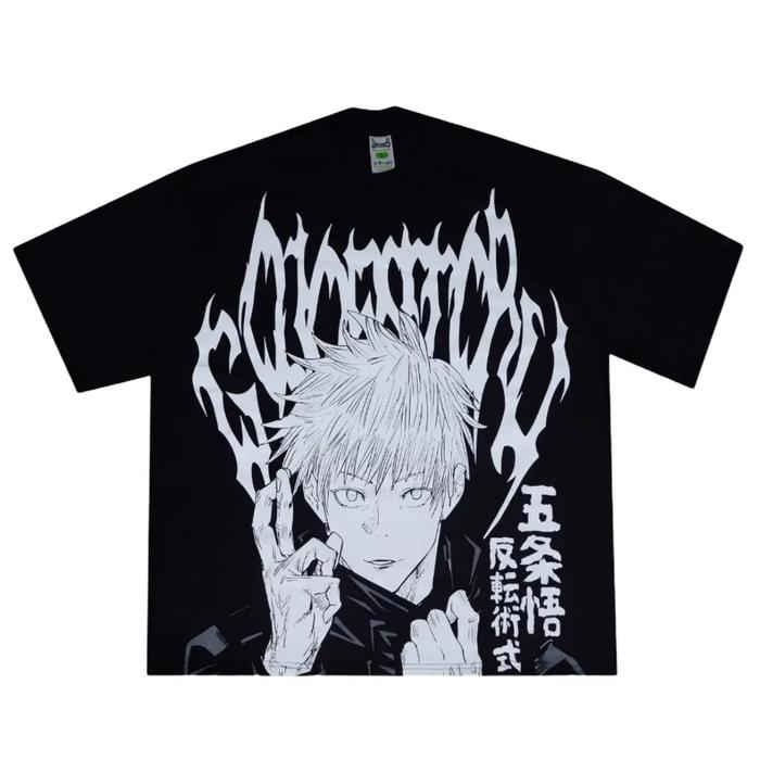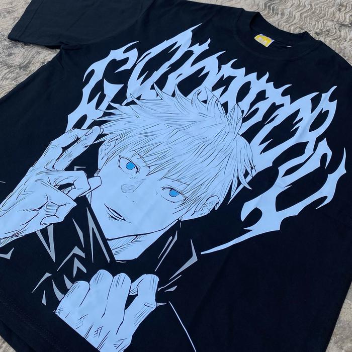 T-Shirt Gojo Satoru - Oversized Model Black Solid 20S Sablon Pria Kaos Pria Distro Original Oversize