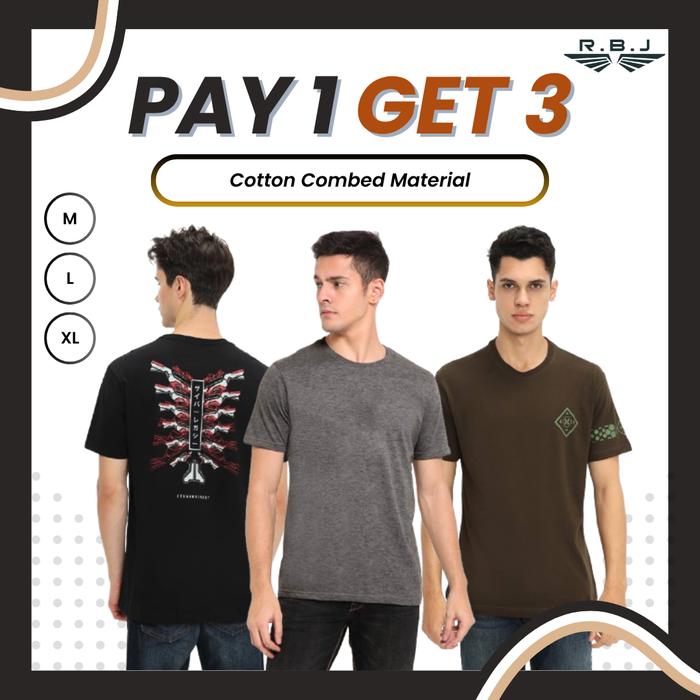 Pay 1 Get 3 T-Shirt Cotton Combed Kaos Pria Distro Original Oversize Dewasa Jumbo Lengan Pendek