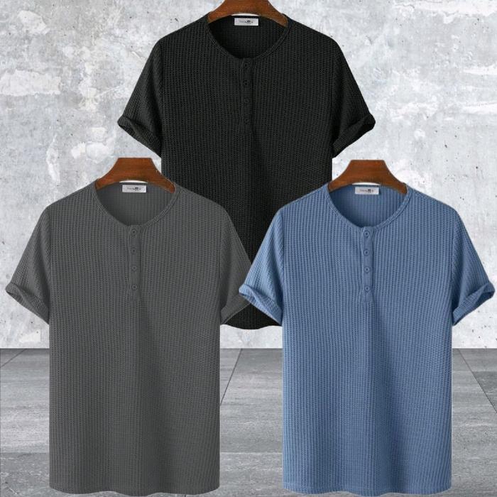 Paket 3pcs Kaos henlay Bahan Waffle Knit Korea Pria dan Wanita Baju Distro Polos Oblong boxy Kaos