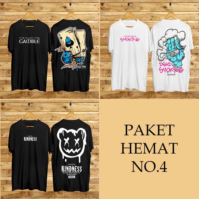 Baju Kaos Tshirt Distro Pria Cowok PAKET HEMAT 3PCS 100 RIBUAN Motif Sablon Lengan Dan Depan