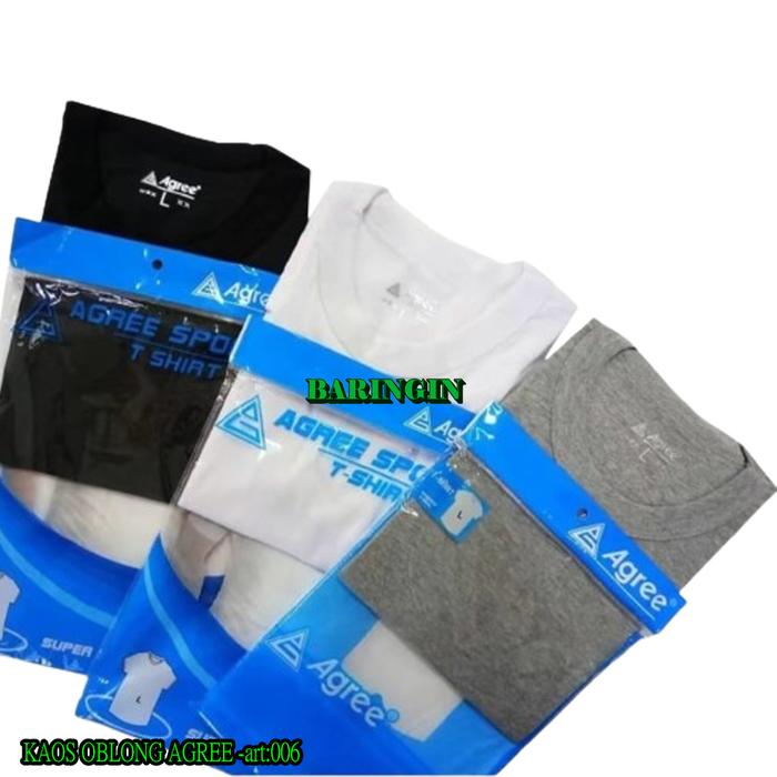 3 Lembar Kaos Oblong Agree Sport art-006-Baju Kaos Polos Pria Dewasa Warna Abu Hitam Putih Katun