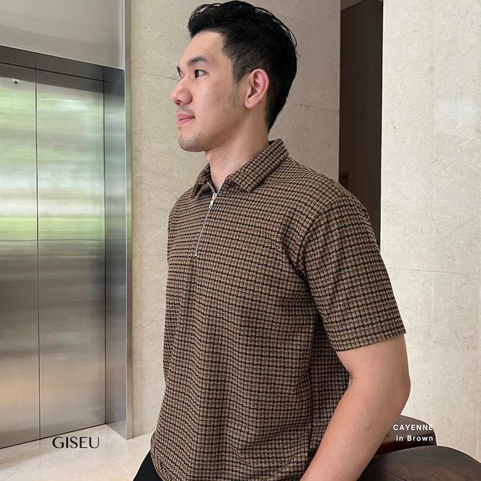 Giseu - Cayenne Tweed Knit Polo Shirt Kaos Pria Distro Original Oversize Dewasa Jumbo Lengan Pendek