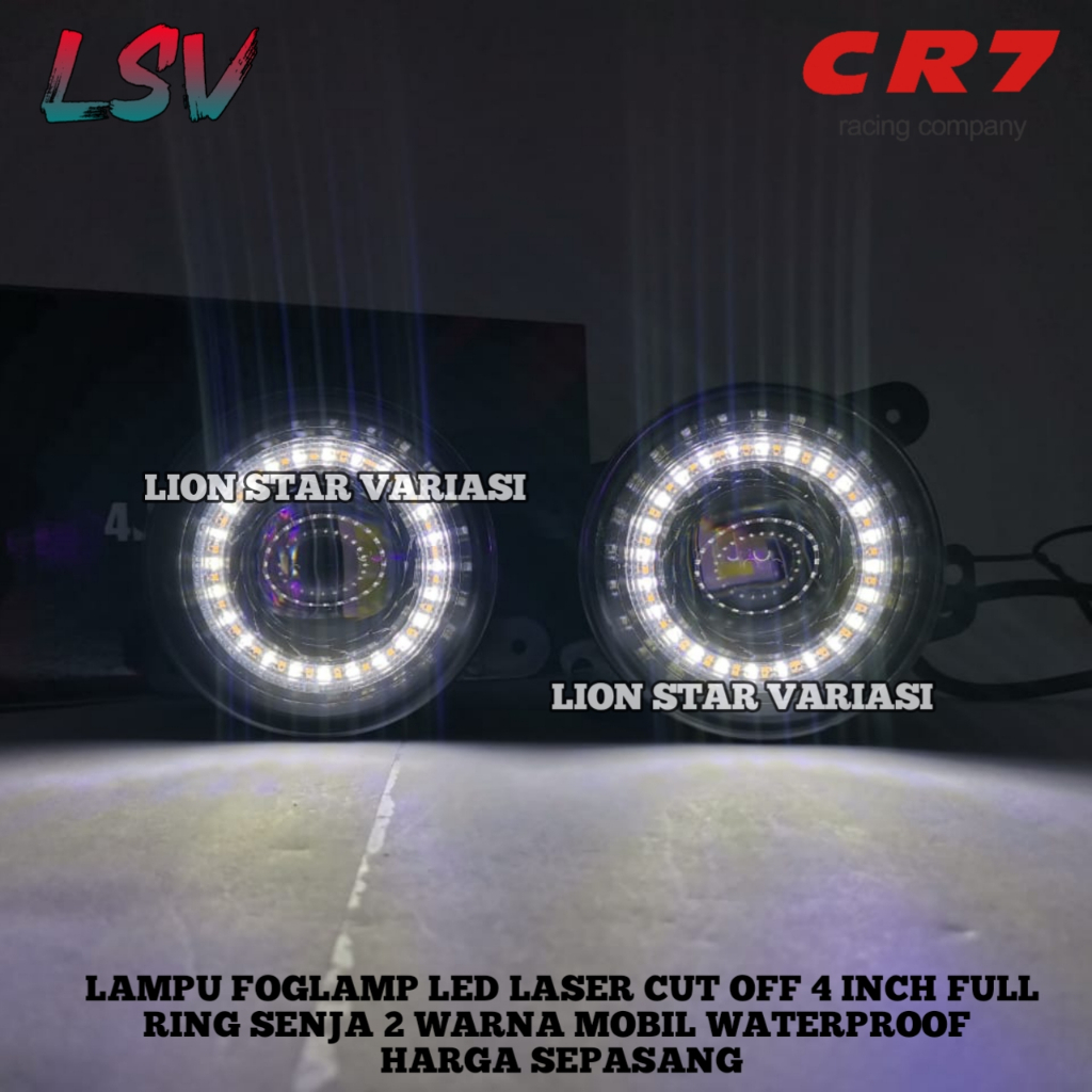 2 Pcs Lampu Tembak Foglamp Mobil 4 inch CR7 Cut Off Full Aluminium Ring Senja 2 Warna Putih Kuning