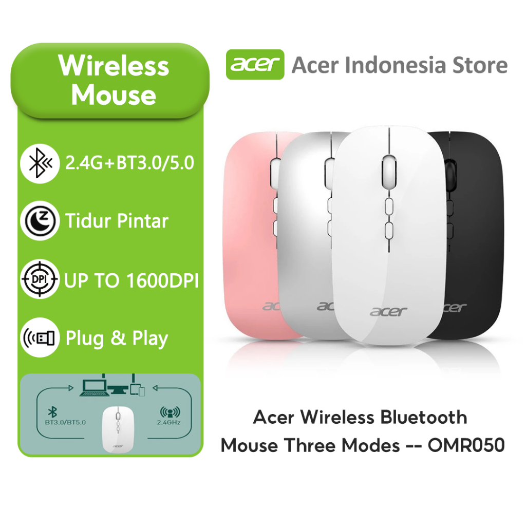 [Star] mouse bluetooth acer wireless omr050 2.4ghz/bt 3.0/5.0 diisi ulang untuk laptop android ios system