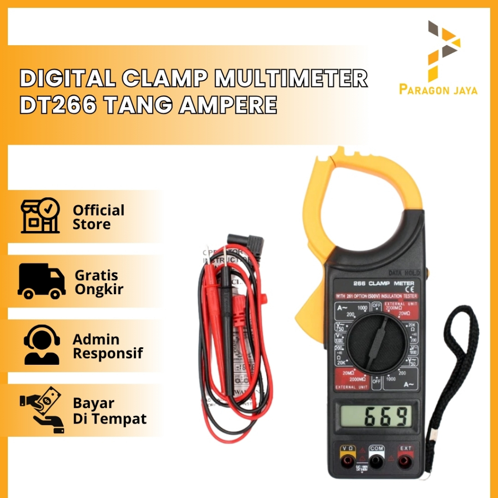 Digital Clamp Multimeter DT266 Tang Ampere Arus Ohm Volt Meter AC DC