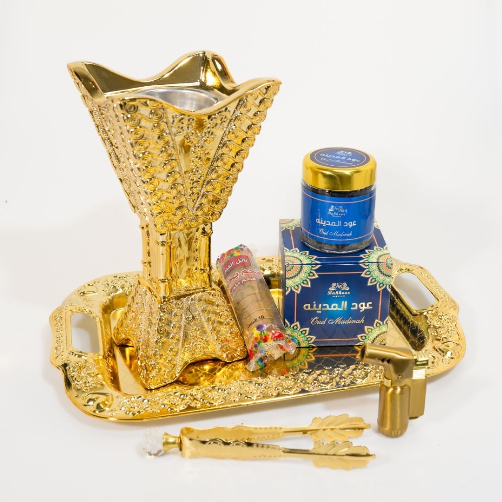 Paket Bukhur Mabkhara Besar Gold Buhur Impor Tempat Bakar Dupa Komplit 1 Set
