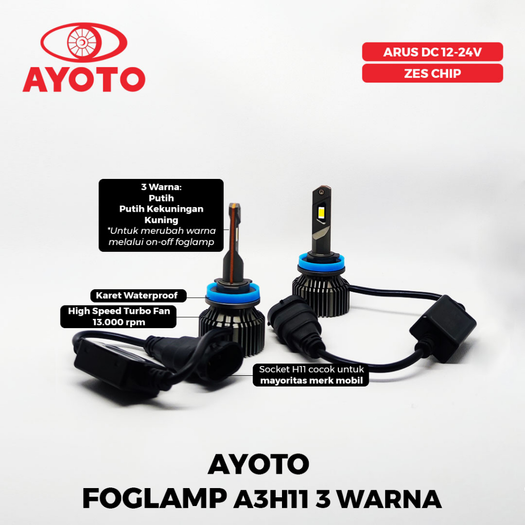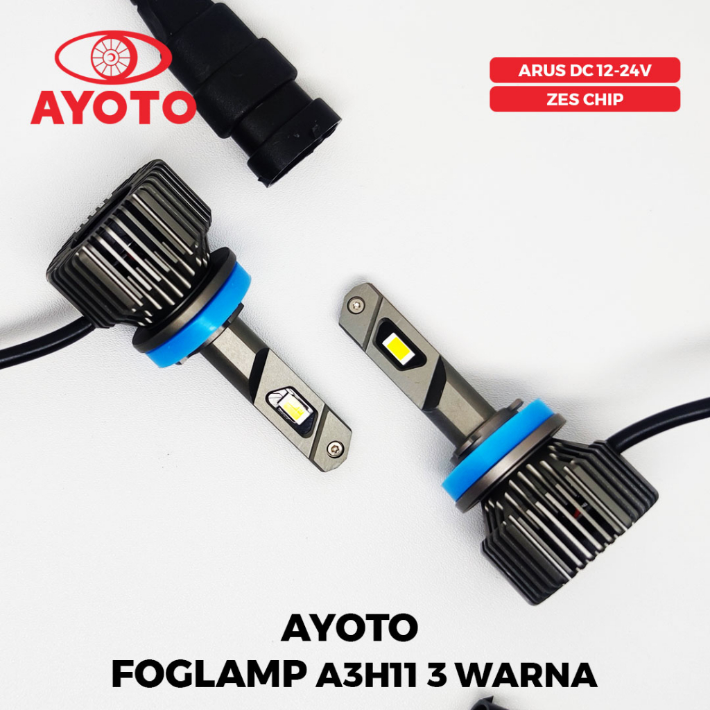 AYOTO A3H11 Lampu Kabut (Foglamp) H11 LED Mobil 3 Warna (Universal Untuk Mobil Socket H11)