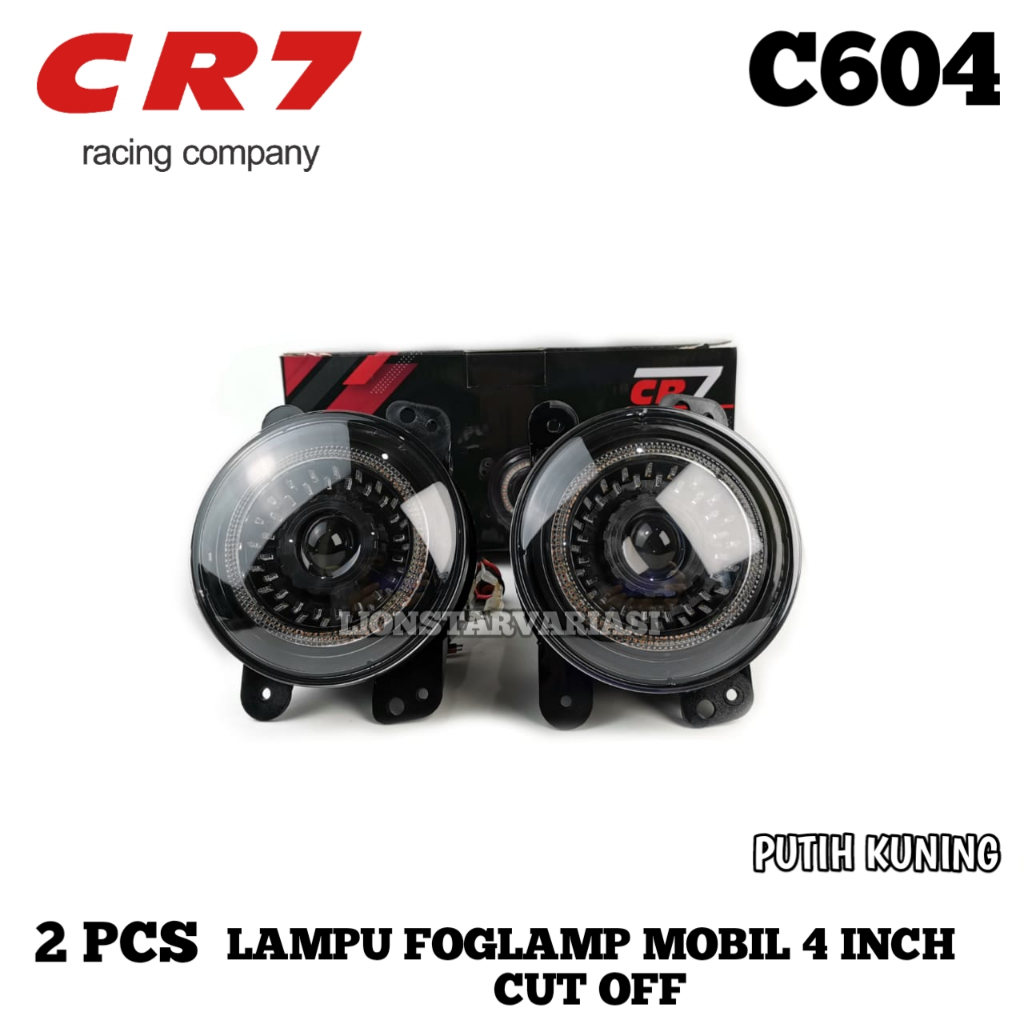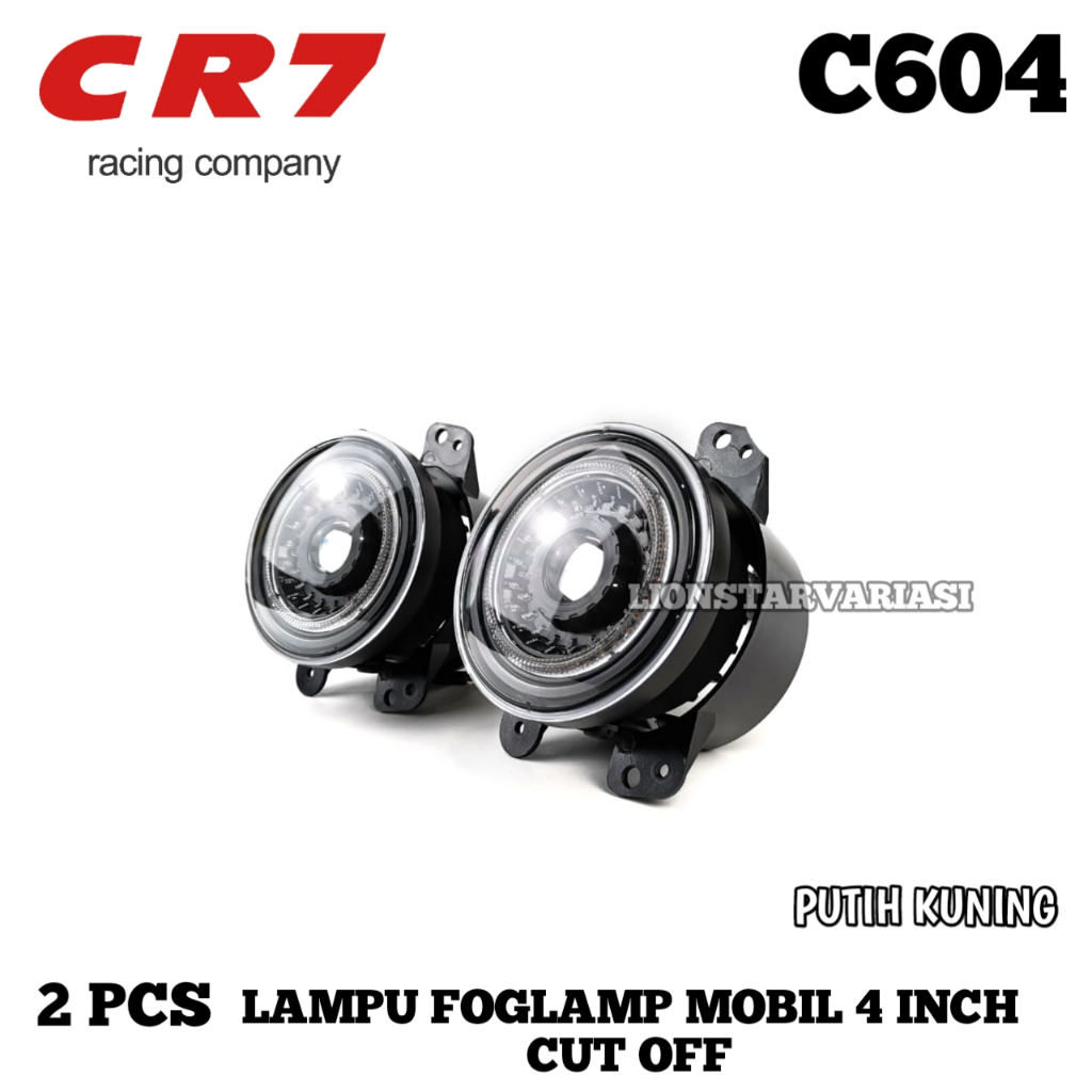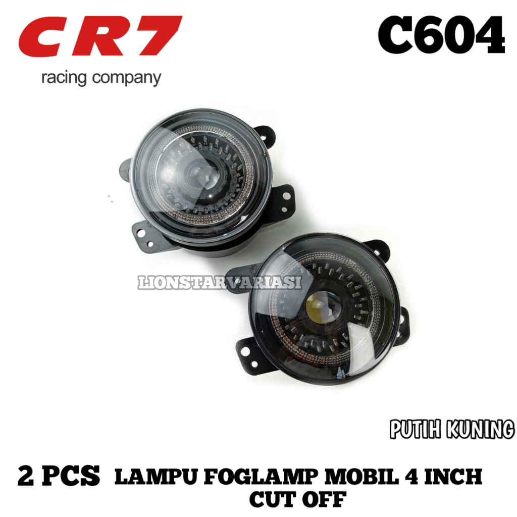 2 Pcs Lampu Depan Foglamp Mobil 4 Inch High Low Cut Off Plus Senja Ring Putih Kuning Mobil Universal