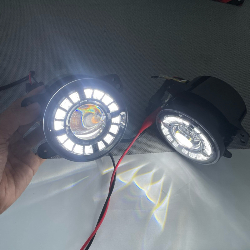 2 PCS LAMPU LED FOGLAMP 4 INCH CAHAYA CUT OFF PLUS ANGEL EYE RING FULL WARNA FOG LAMP MOBIL