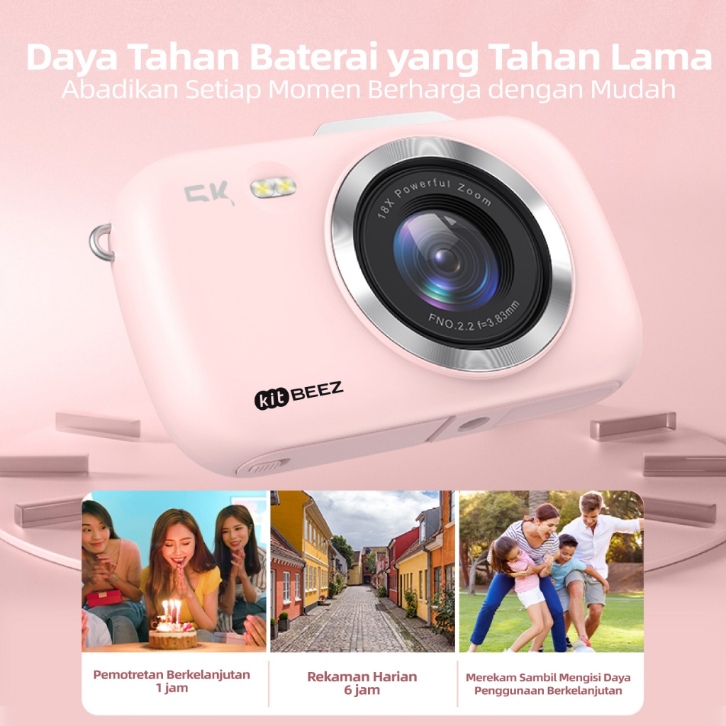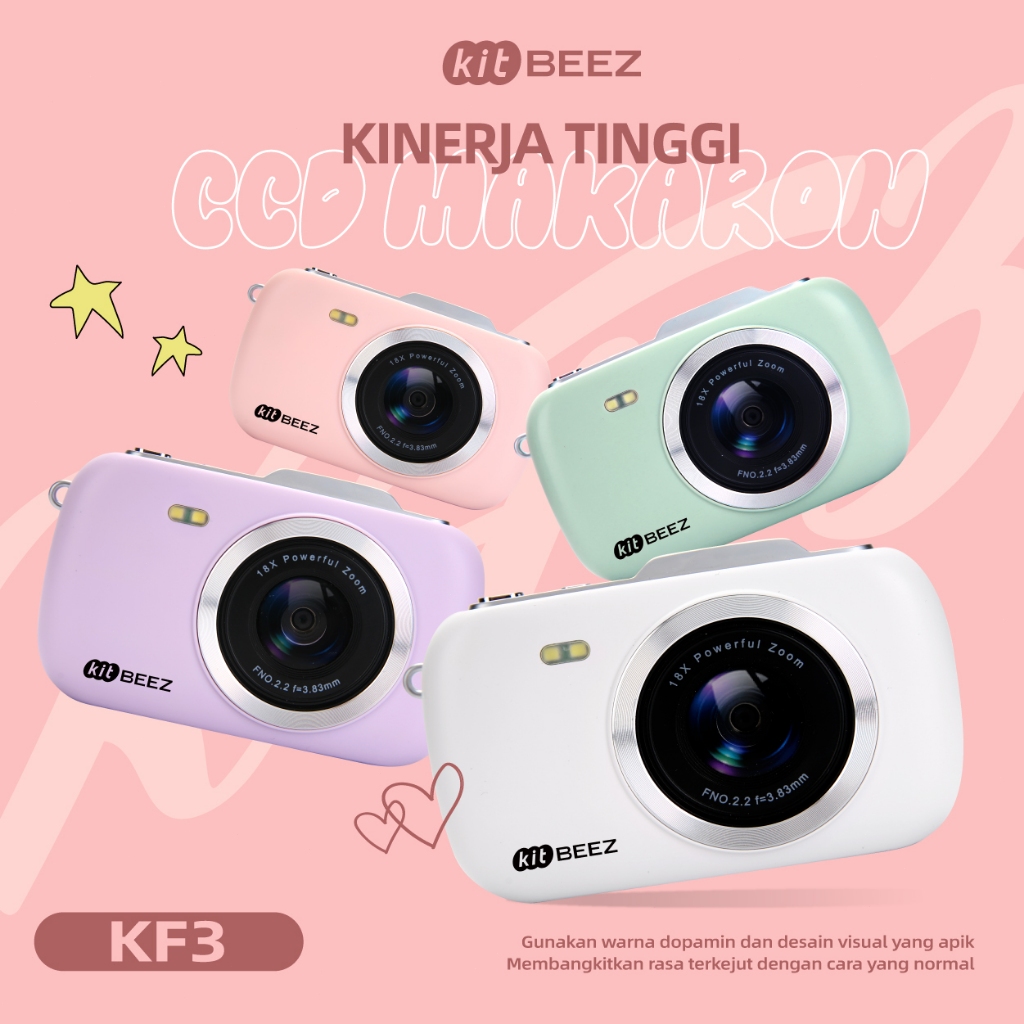 KiTBEEZ KF-3 Kamera Digital 64MP 18X 4K HD Vedio Macaron Kamera Kamera Murah Digital Camera With Flash Built-in Filters digicam kamera vlog