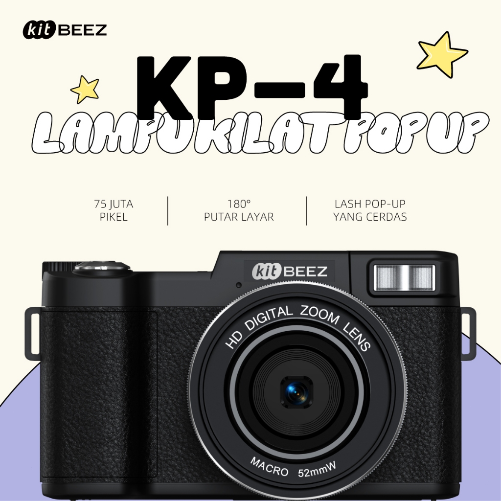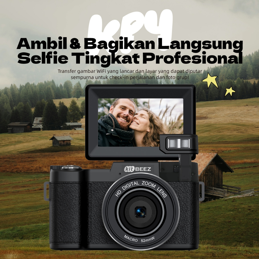 KiTBEEZ KP-4 Kamera Digital WiFi 75MP 5K Hitam Putaran 180° Zoom 18x kamera murah Dengan Dukungan Selfie Koneksi WIFI untuk Hadiah