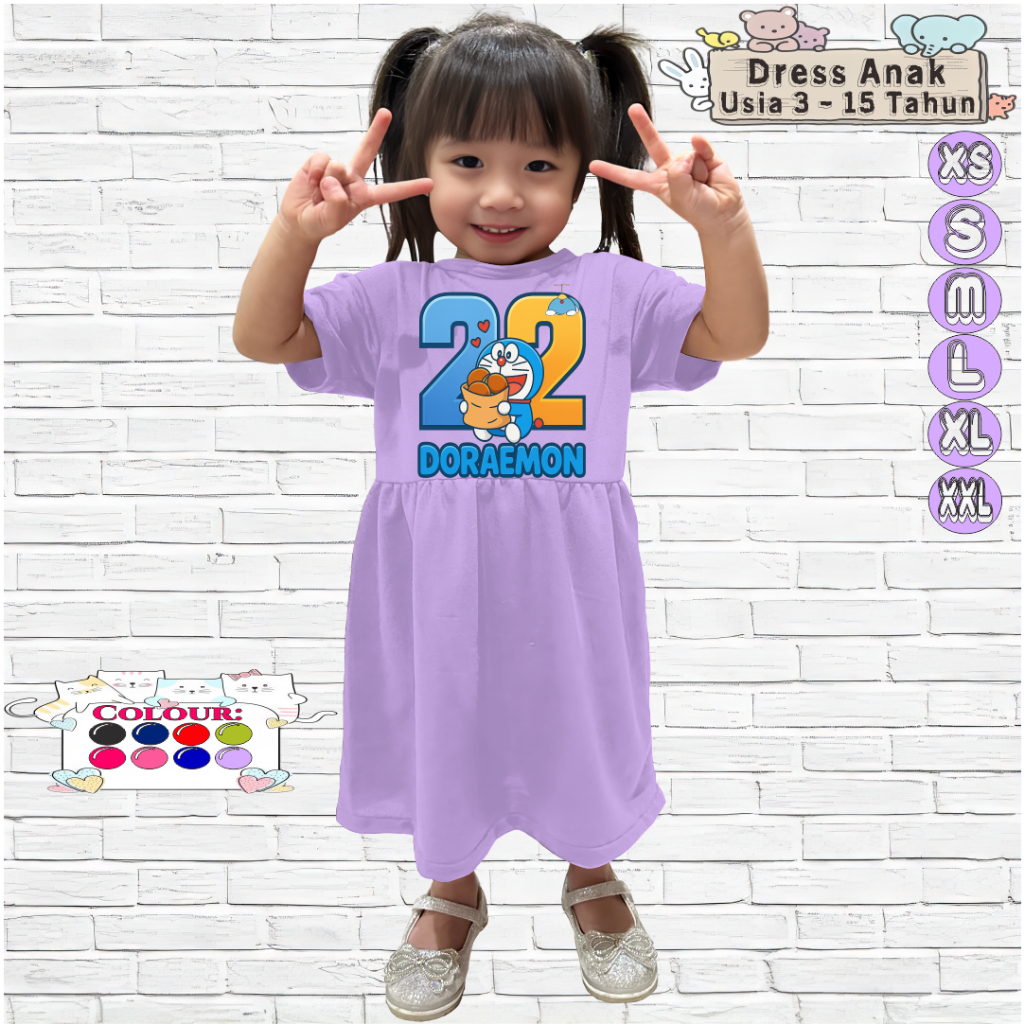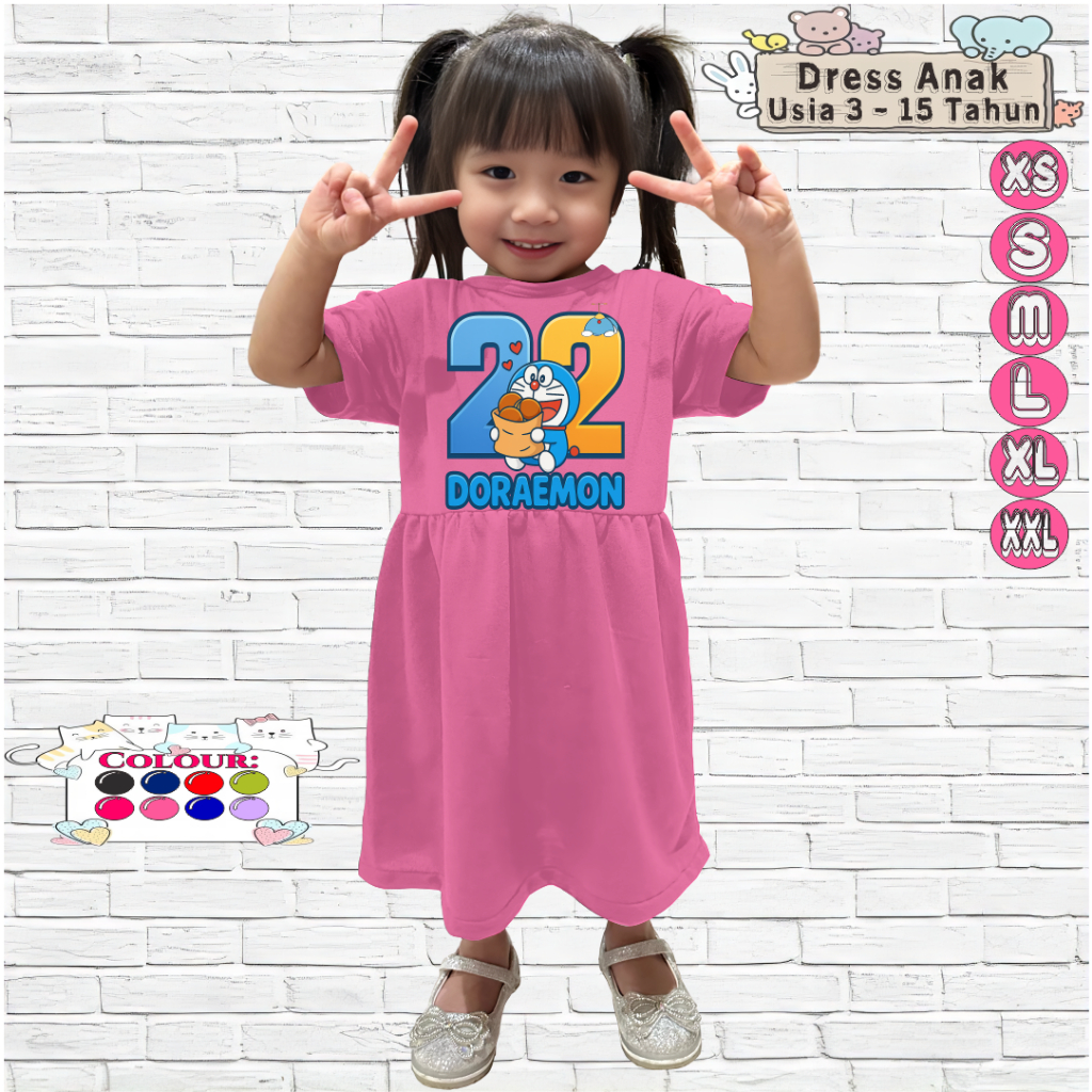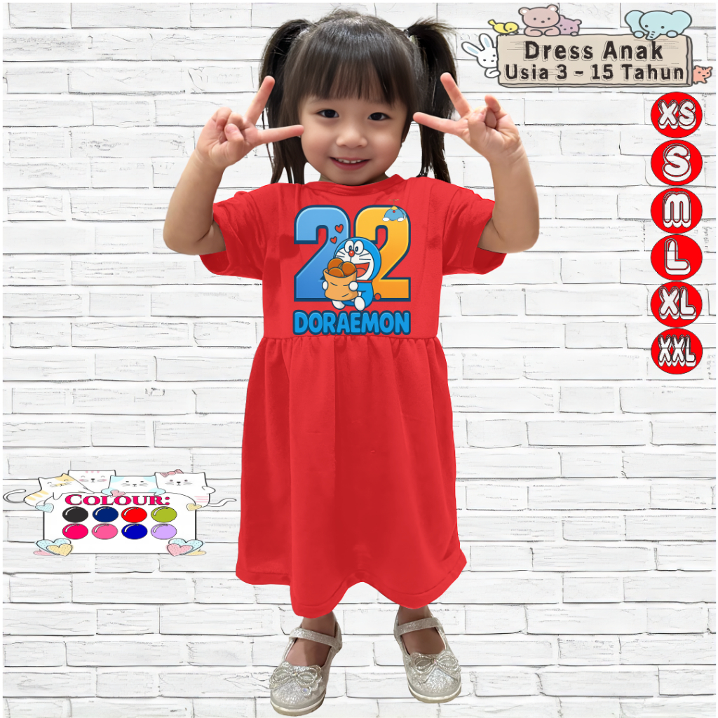 Baju Dress Anak Perempuan 3-15 Tahun Motif DORAEMON 22