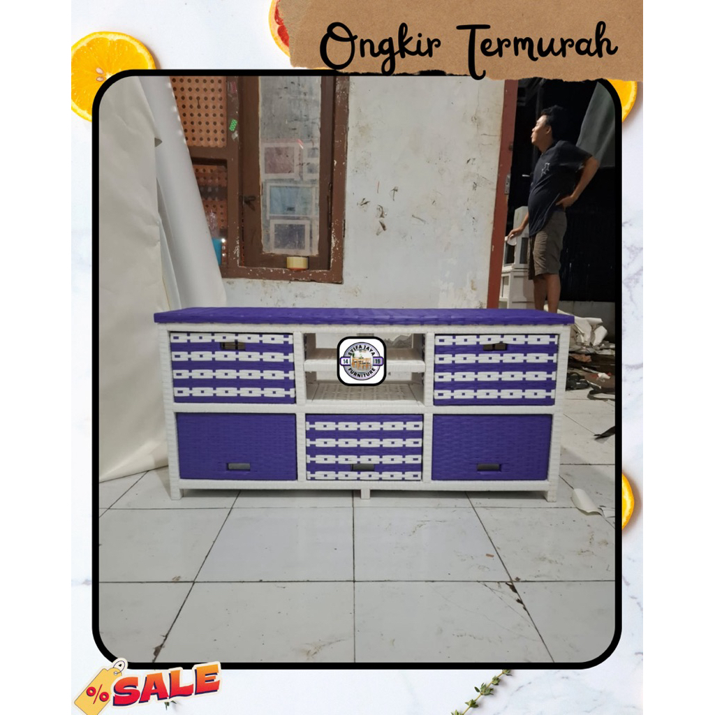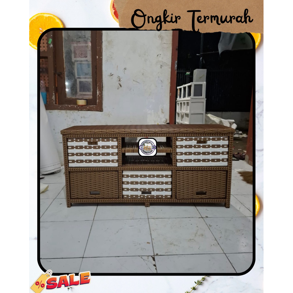 (Ready stok) Meja tv tabung minimalis modern 40inc rotan sintetis laci 6 dvd Motif Zebra