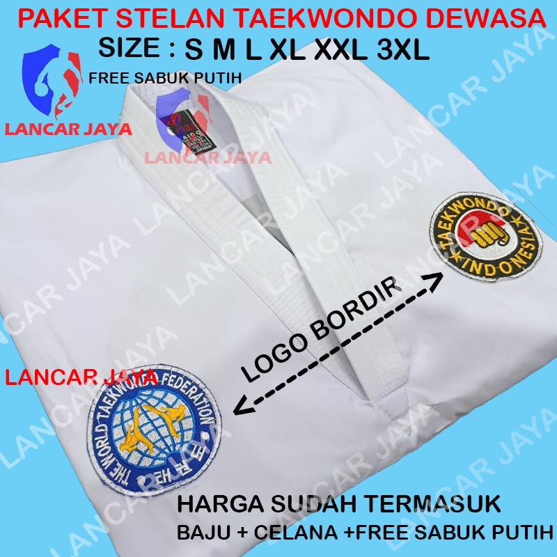 Baju Taekwondo Dewasa 1 Stel - Sabuk Putih, Bordir Depan