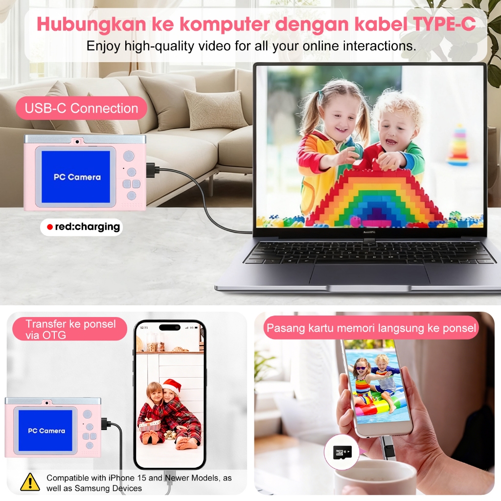 Free memori 32GB T-JERZEN Kamera Digital CCD kamera digital 2,4 Inci 8X Zoom1080p Vlog Flash Otomatis Pemotretan Perekaman Video &Foto