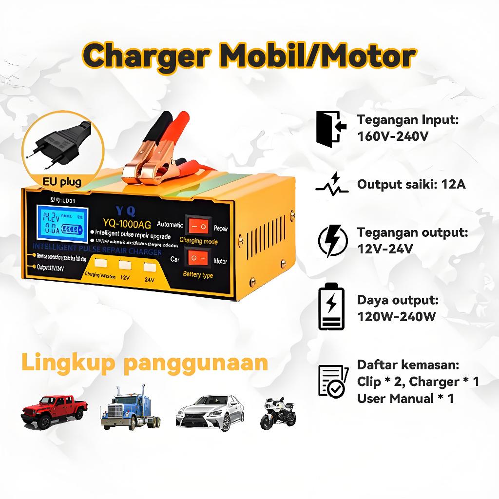 Charger Aki 12V/24V 6-105AH Smart Battery Charger Mobil Motor/Case Aki Mobil/Case Aki Motor/Cas Aki/Case Aki Motor Dan M