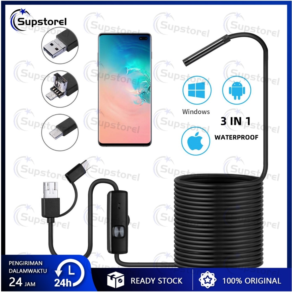 Endoscope 3-in-1 Kamera HD Tahan Air Industri 2 Meter 5 Meter Mini Kamera Waterproof