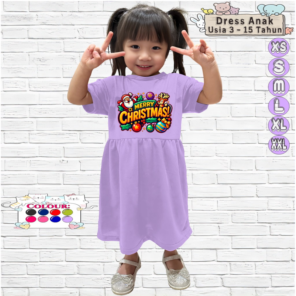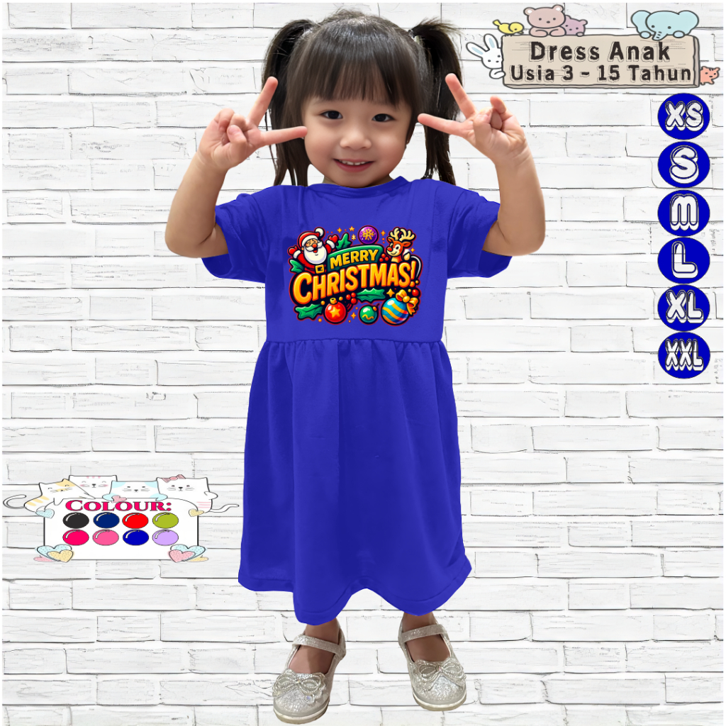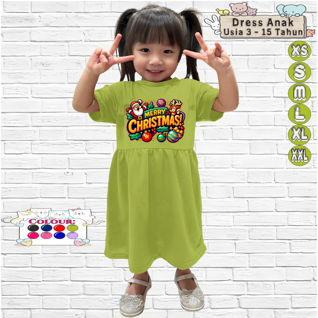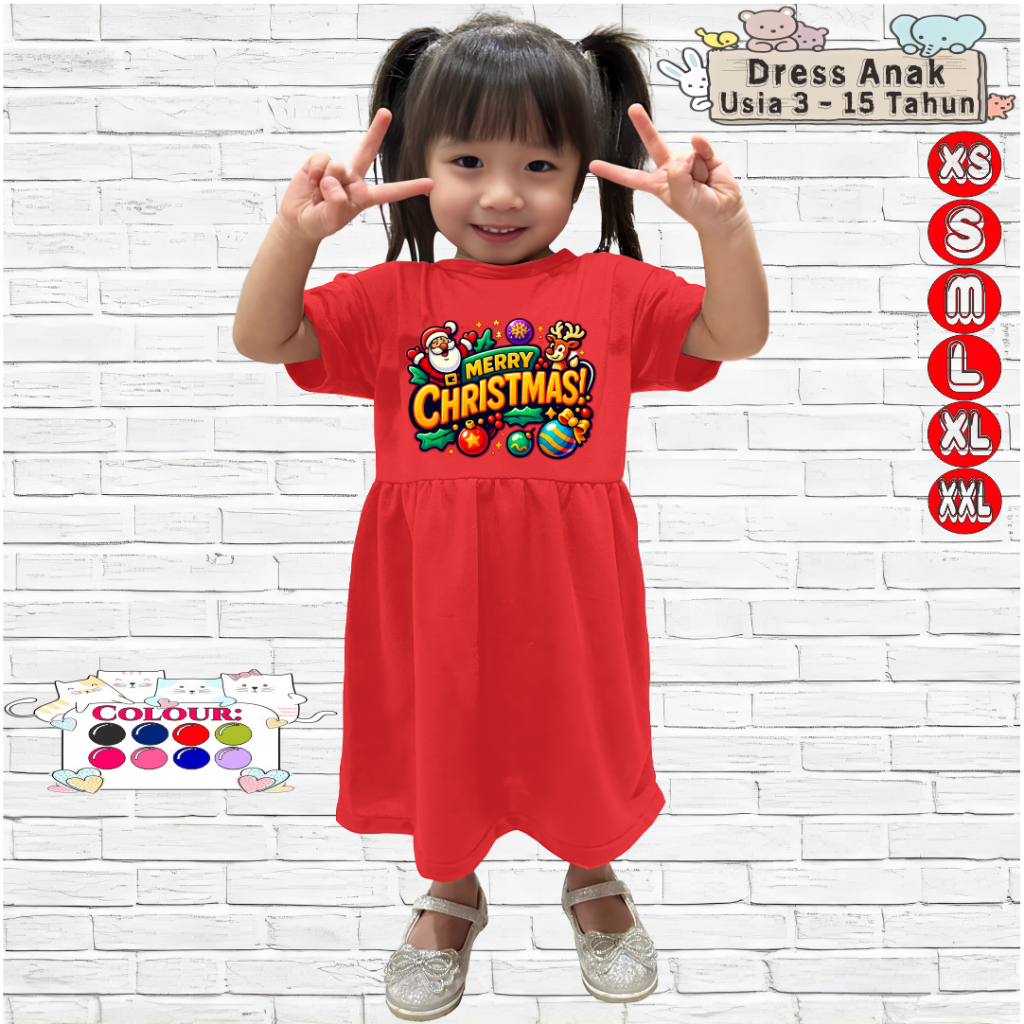 Baju Dress Anak Perempuan 3-15 Tahun Motif COLORFUL CHRISTMAS