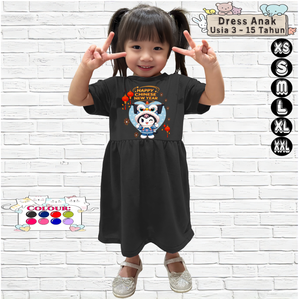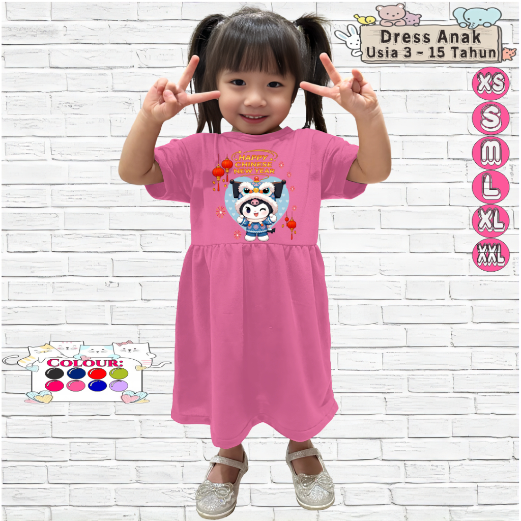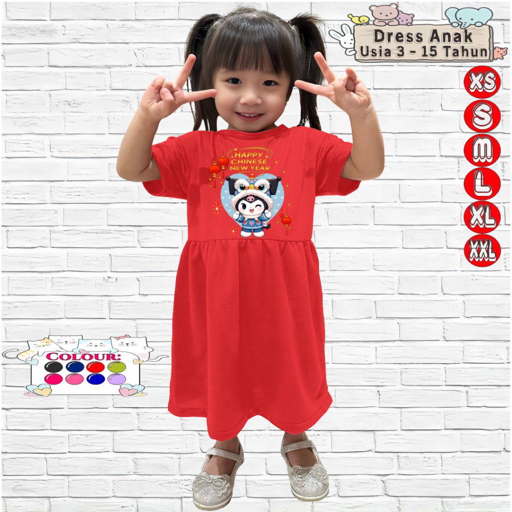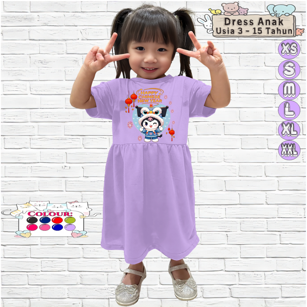 Dress Anak Perempuan 3-15 Tahun Motif KUROMI NEW YEAR