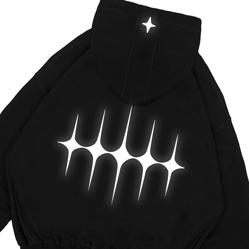 Gadabang Boxy Hoodie Double Zipper Oversize Menyala Sablon Reflective Gdbng Hitam