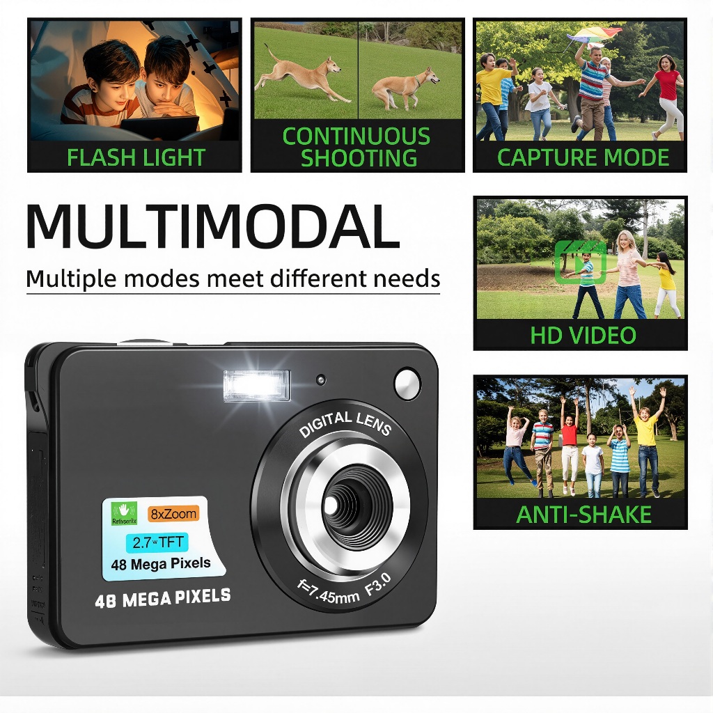 Kamera digital retro HD Digicam Kamera Pocket 48MP Kamera Kamera digital pocket ORIGINAL FULL SET 48MP Layar LCD 2,7 Inci Zoom 8x
