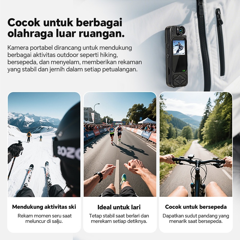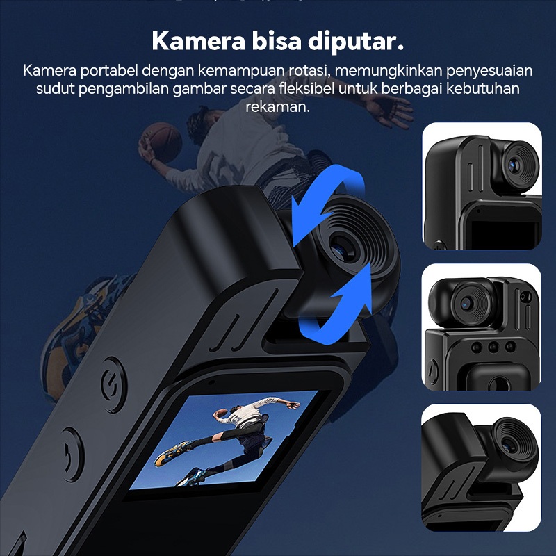 Manu Mini Kamera HD 1080P Camcorder Layar 1.3" Dapat Diputar 180° Portabel Clip-On Perekam Video Digital Recorder Infrared Night Vision