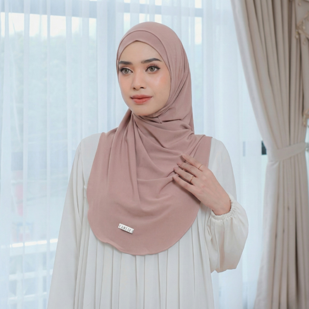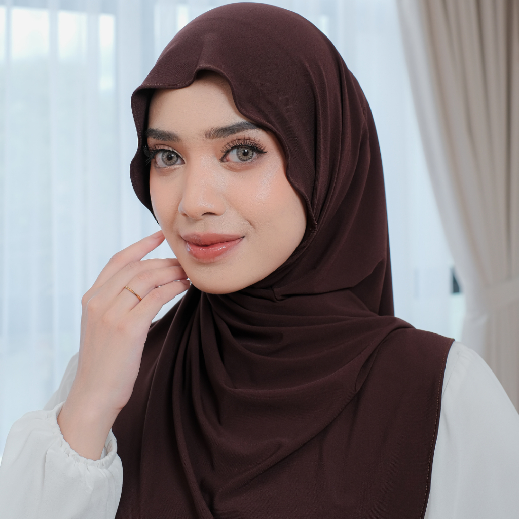 Coverly Hijab - Krudung Bergo Jersey Mahogany Hijab Instan Size XL Jilbab Langsung Premium Maryam