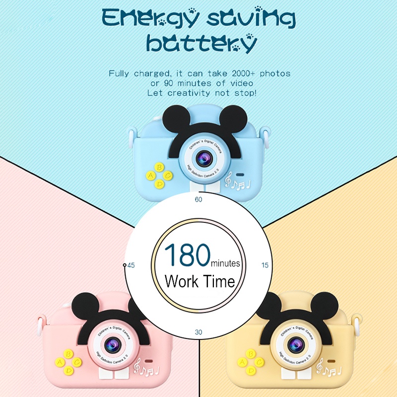 Mini Anak Kamera Lucu 1080P Dual Kamera Selfie 2.0 Inch HD Layar Kamera Digital untuk Mickey Mouse Anak Kamera Anak Hadiah Mainan Anak