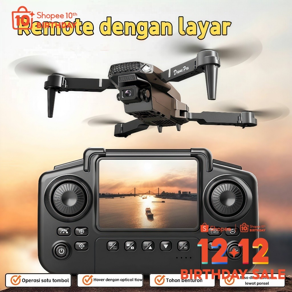 Smart Drone 4K HD Dual Camera with Screen Remote Control / Tanpa HP / Real-time View / Optical Flow Hover /