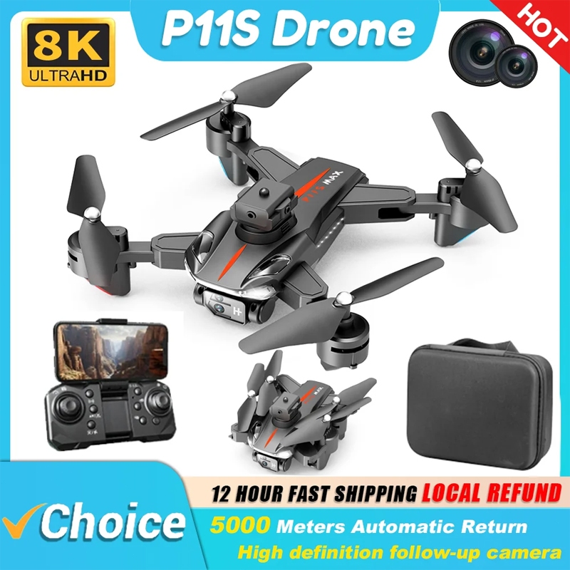 Smart Drone P11S MAX Dual 8K HD Camera Shoot Original Indoor Outdoor Drone Mini RC Drone Fungsi anti-tabrakan Balik 360 derajat