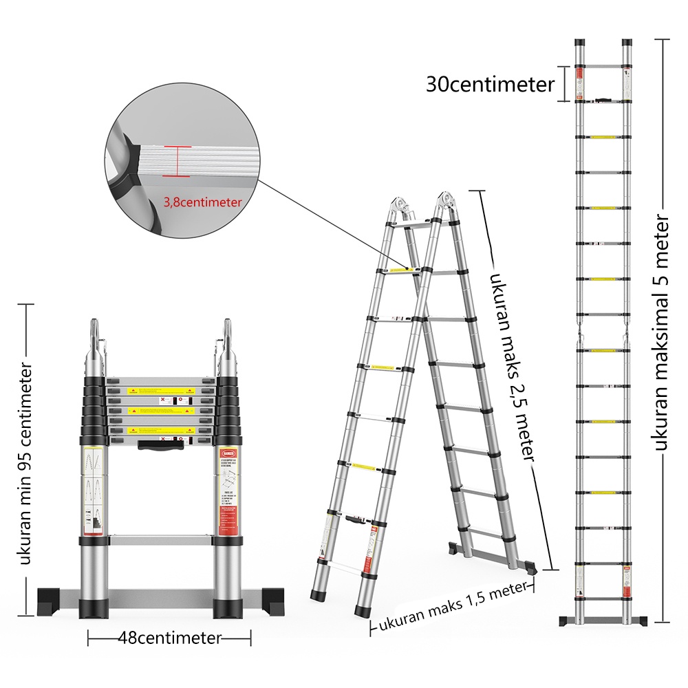 BOWEITI Tangga Lipat Aluminium Banyak Gaya Kualitas Tinggi Warna unik Tangga Teleskopik