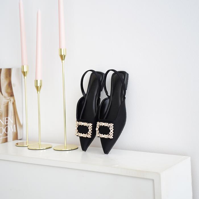 ZODE DIAM0ND MULES - FLAT SHOES WANITA TANPA HAK - BLACK, CREAM, COFFEE - BLACK, 36