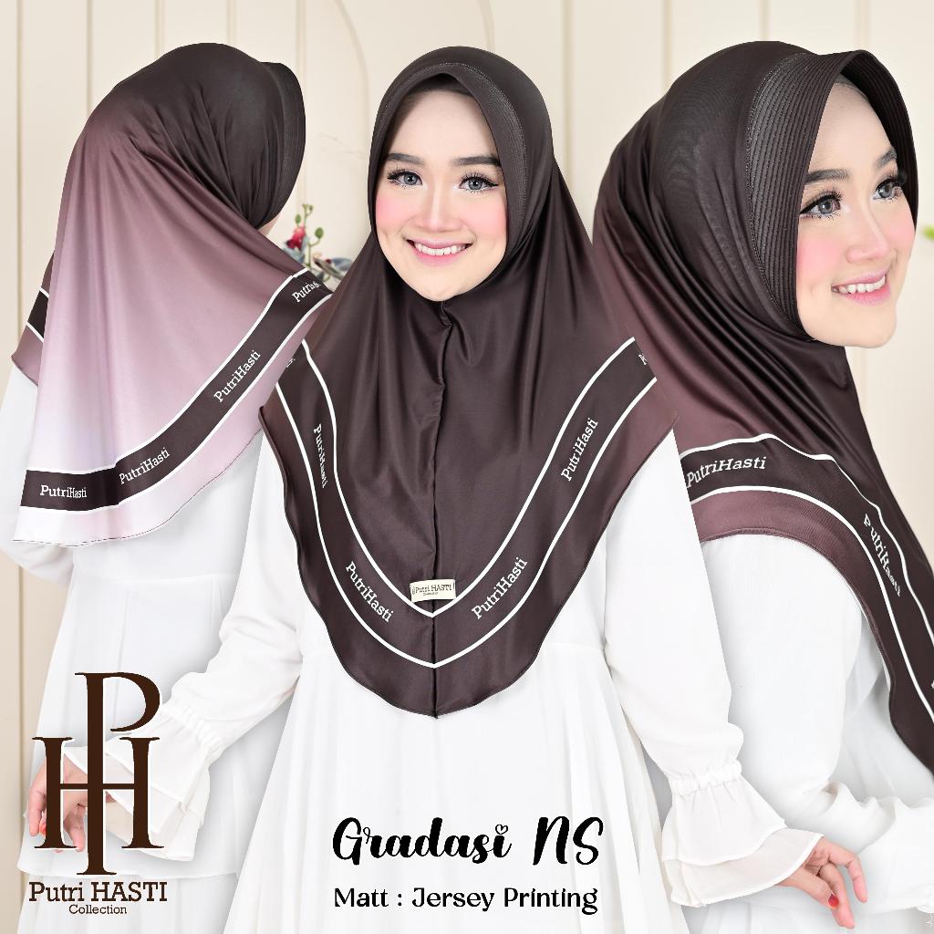 PUTRI HASTI Hijab Bergo Motif Printing Jilbab Instan Pet Jersey Premium Gradasi NS