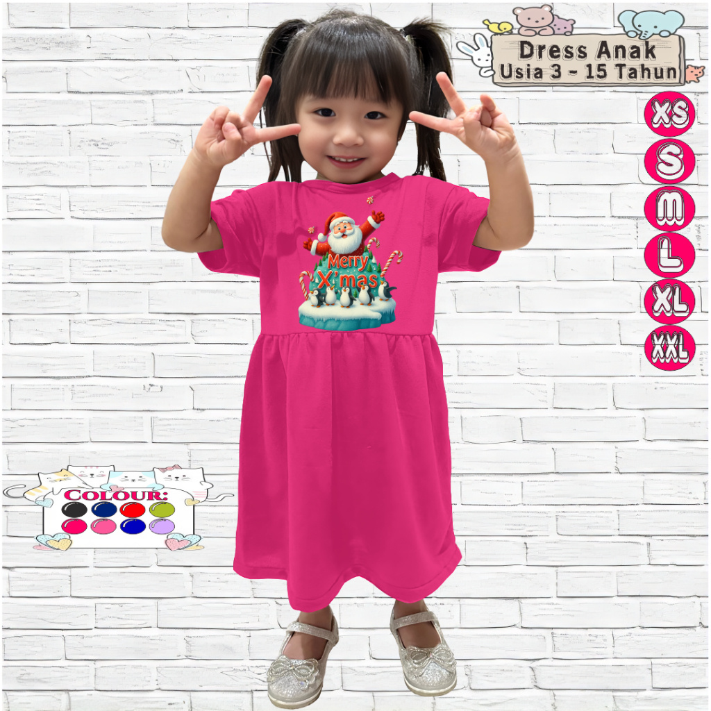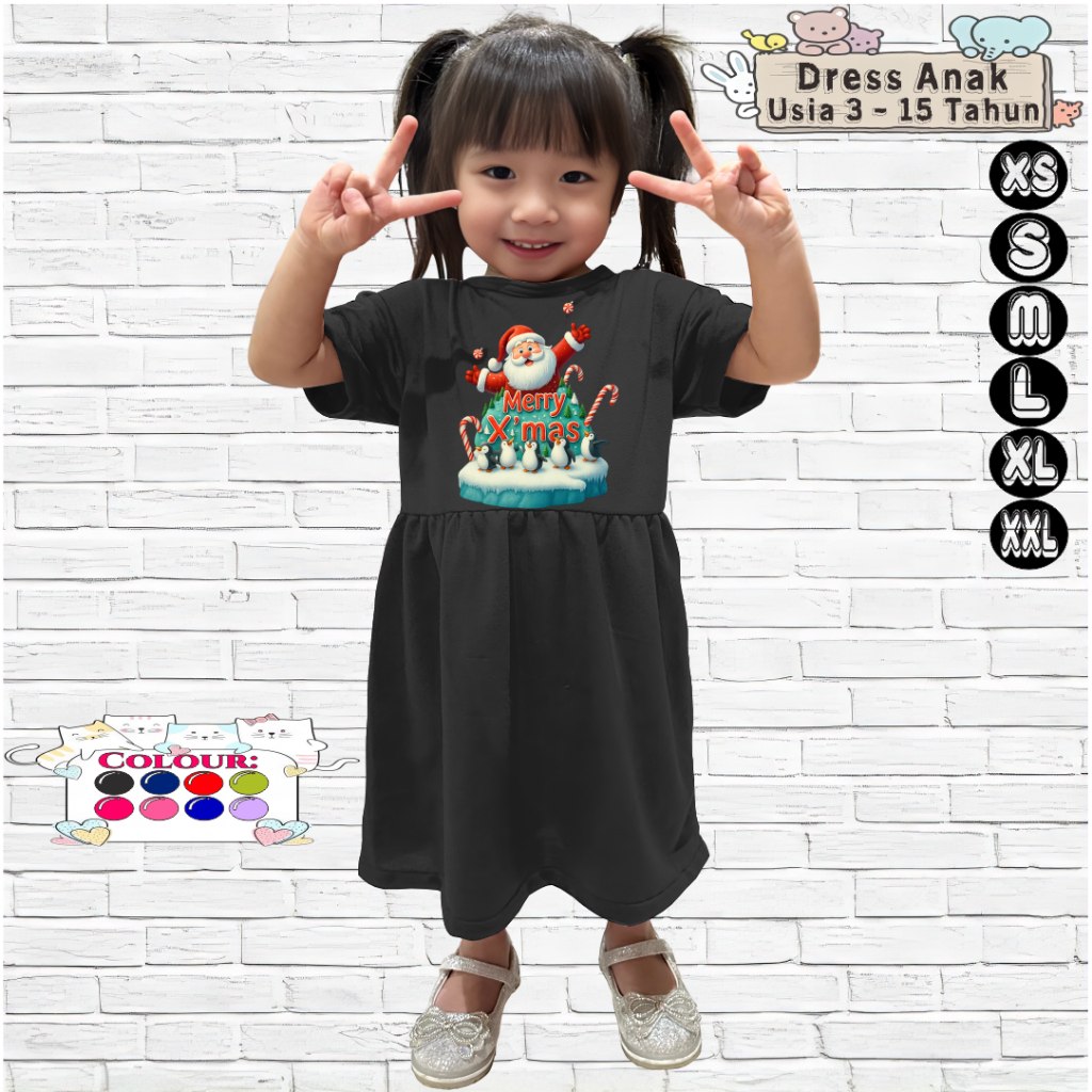 Baju Dress Anak Perempuan 3-15 Tahun Motif MERRY X MAS CHRISTMAS