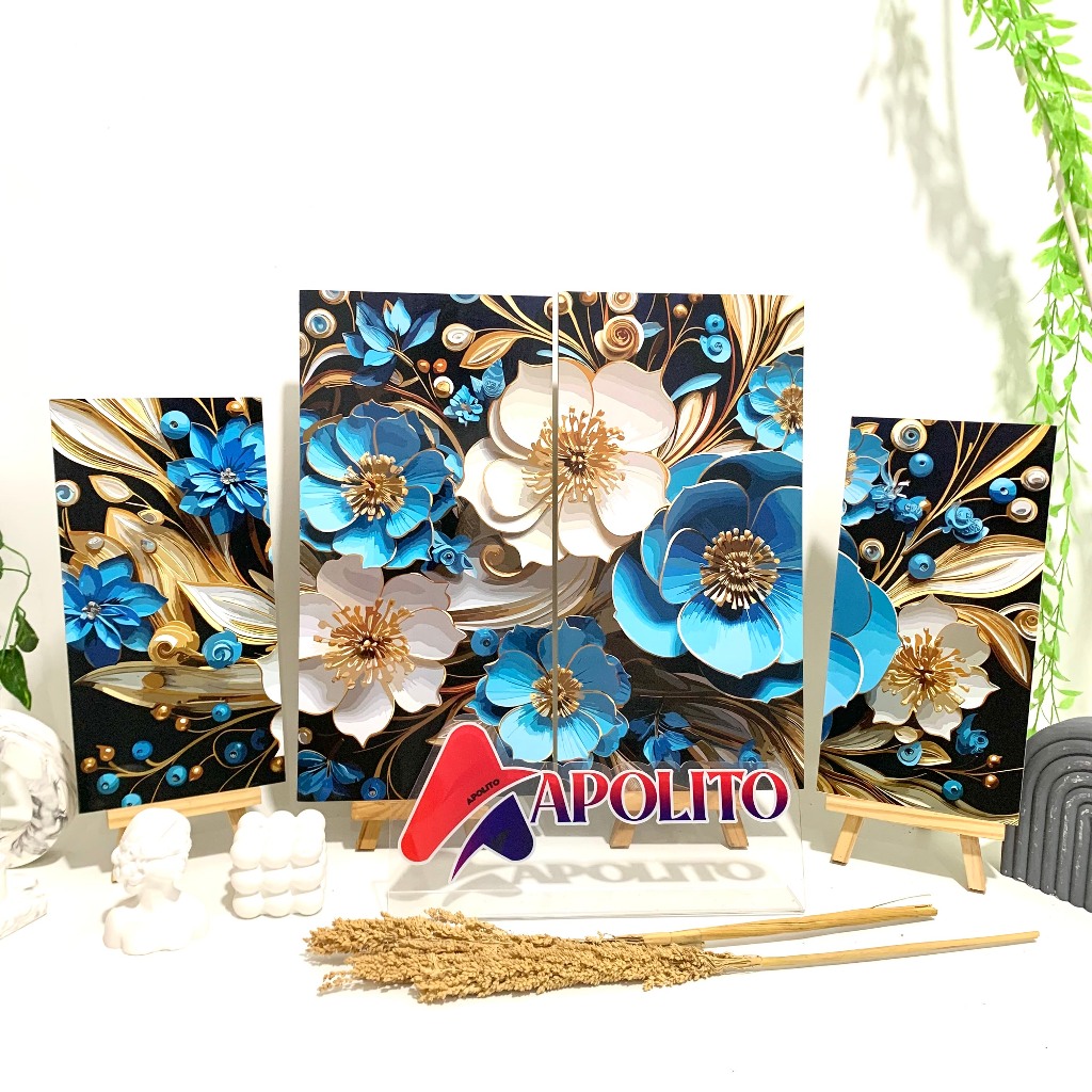 HIASAN DINDING SET BLUE ABSTRAK ORNAMEN FLORAL ISI 4 DEKORASI RUMAH PAJANGAN DINDING SATU SET BUNGA