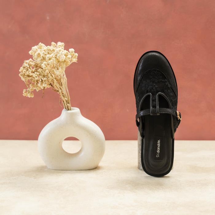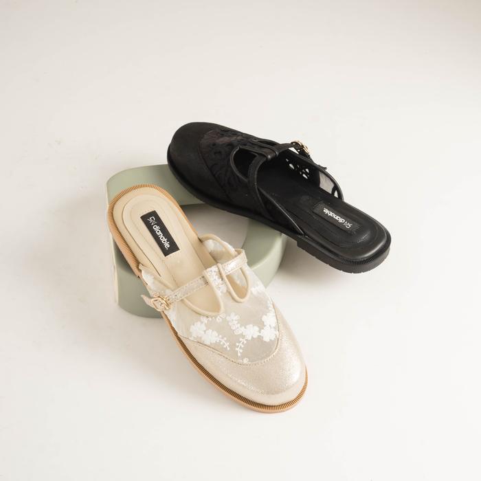 DIANABLE - LOUI MULES SHOES WANITA (BLACK - BEIGE) NEW LACE - BLACK, 36