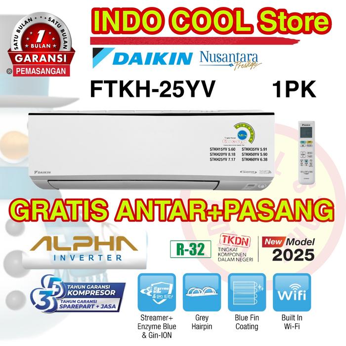 Ac Daikin Alpha Inverter 1 PK FTKH25-YV (Wifi) - UNIT ONLY TANPA STEKER