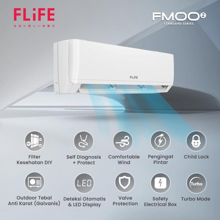FLIFE - Air Conditioner / AC 1pk - Standar (2024) 725W - Turbo Mode - LED Display - Smart Cleaner - Model FAC-09FMOO2