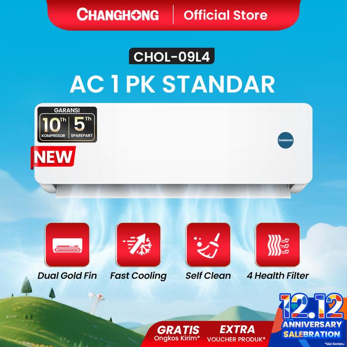 CHANGHONG AC 1 PK STANDARD CHOL-09L4 [INDOOR + OUTDOOR UNIT ONLY] [FAST COOLING] [SLEEP MODE] [ECO MODE] - Unit Only