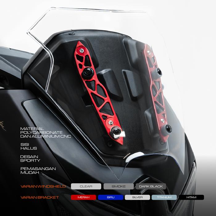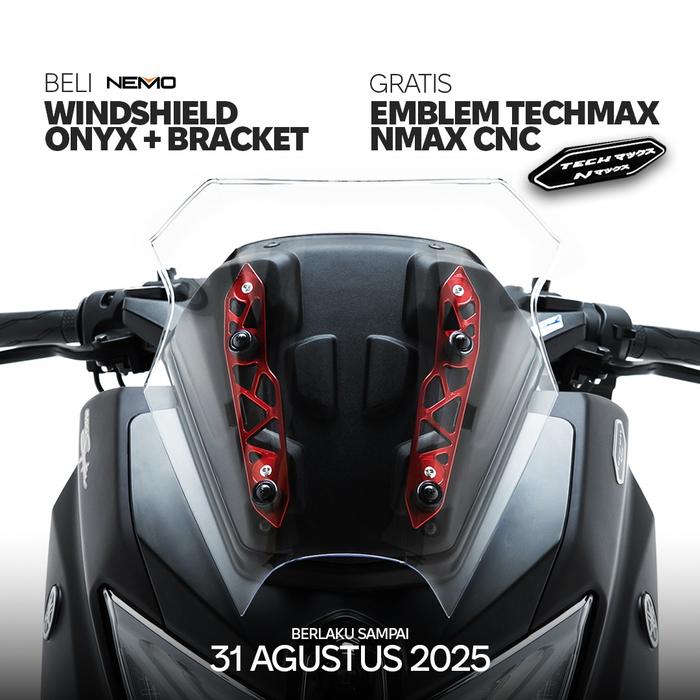 NEMO WINDSHIELD / VISOR ONYX + BRAKET CNC YAMAHA NMAX TURBO DAN NEO - DARK BLACK, HITAM