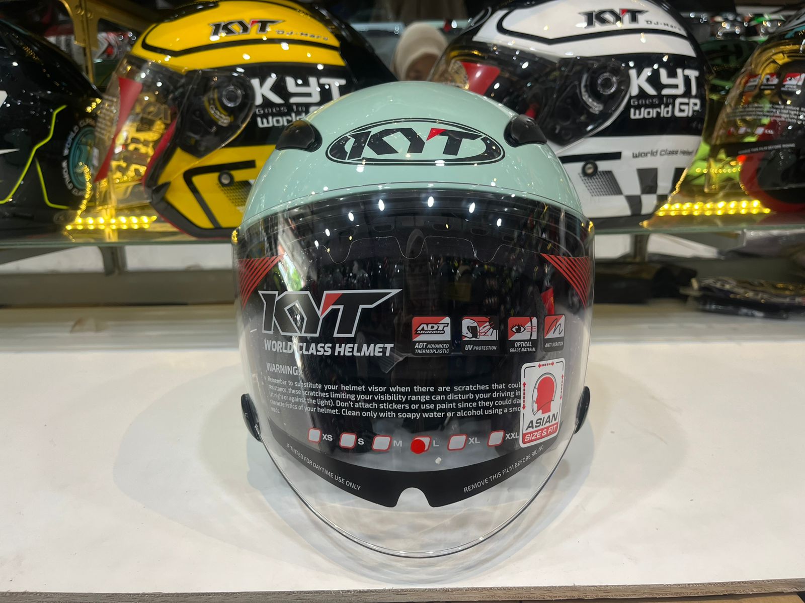 Helm kyt galaxy flat r solid SAGE GREEN ORI kyt half face HELM MOTOR