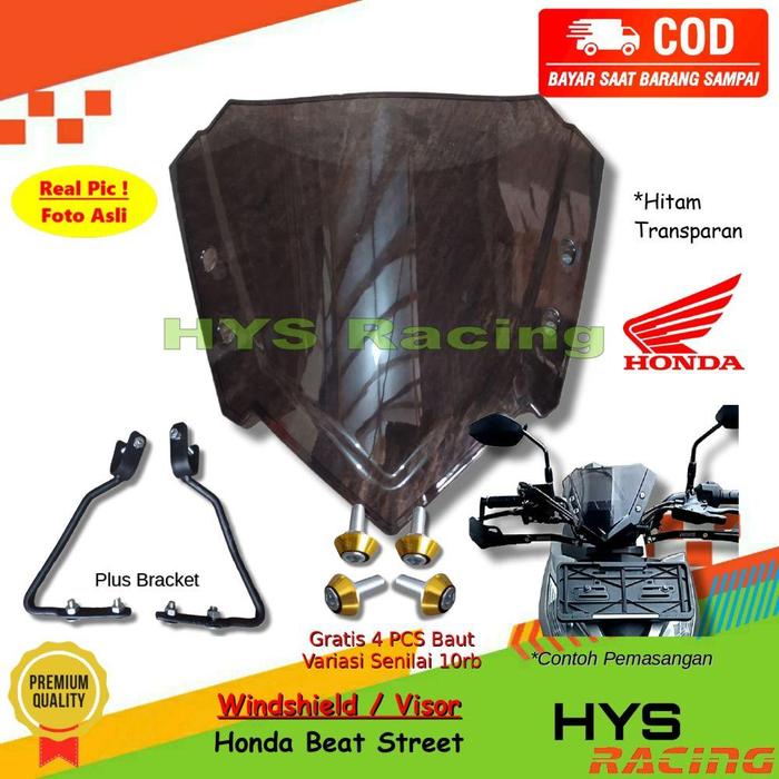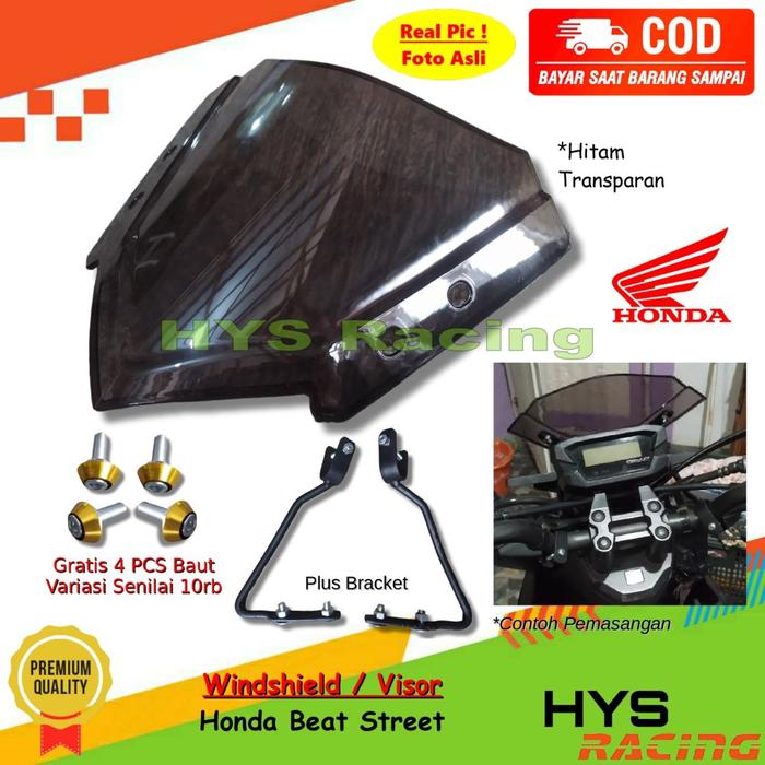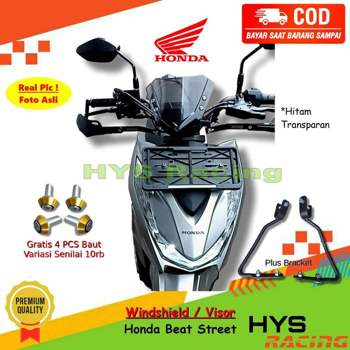 HYC VISOR KACA DEPAN HONDA BEAT STREET PLUS BREKET - WINSIL WINDSHIELD VARIASI MOTOR BONUS BRACKET +BAUT - VISOR+BREKET