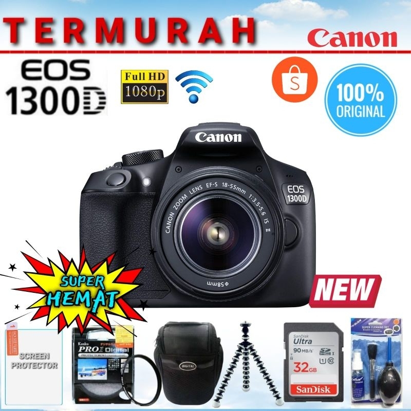 KAMERA CANON EOS 1300D WIFI + LENSA 18-55MM PRODUK ORIGINAL DAN BERGARANSI ( Superdigital )