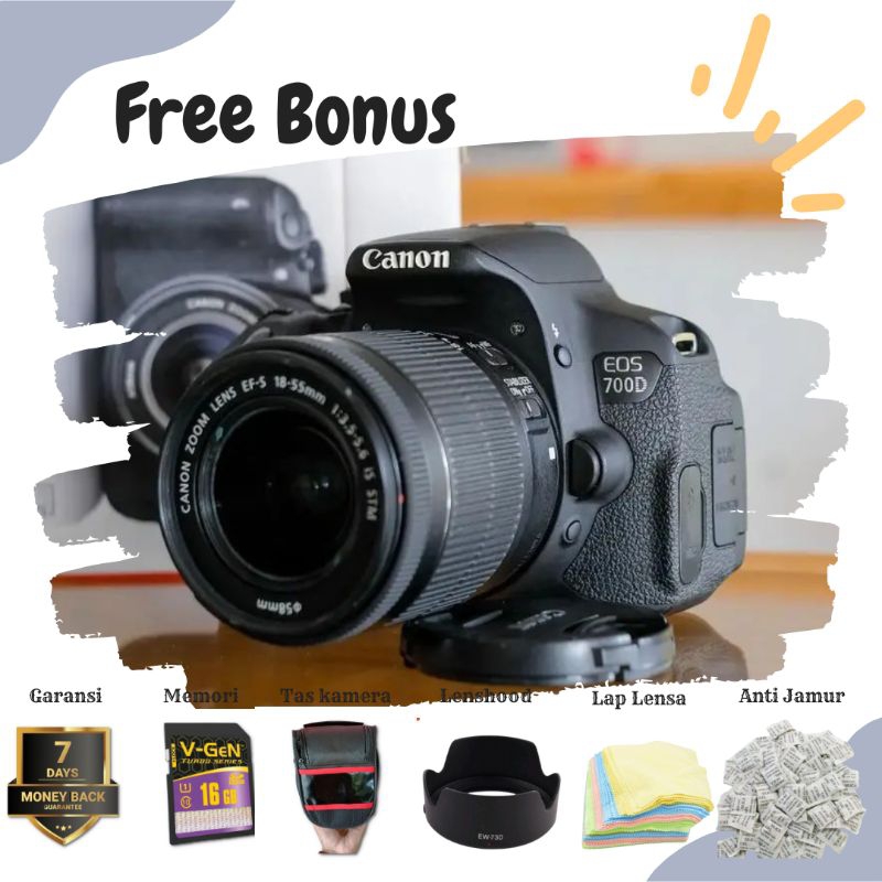 Kamera Canon 700D + Lensa Kit StM 18-55 Mm + Memori Dan No minus