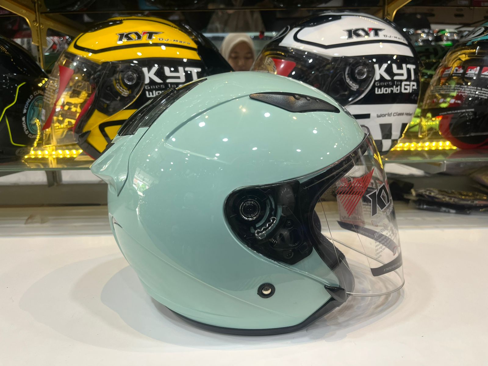 Helm kyt galaxy flat r solid SAGE GREEN ORI kyt half face HELM MOTOR