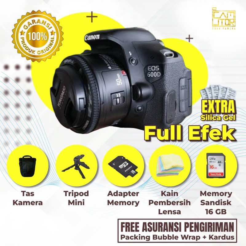 CANON EOS 600D + LENSA FIX 50MM F1.8 FULL BOX LAYAR FLIP TERLARIS