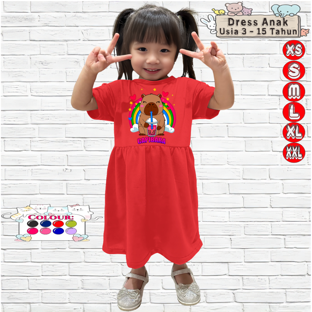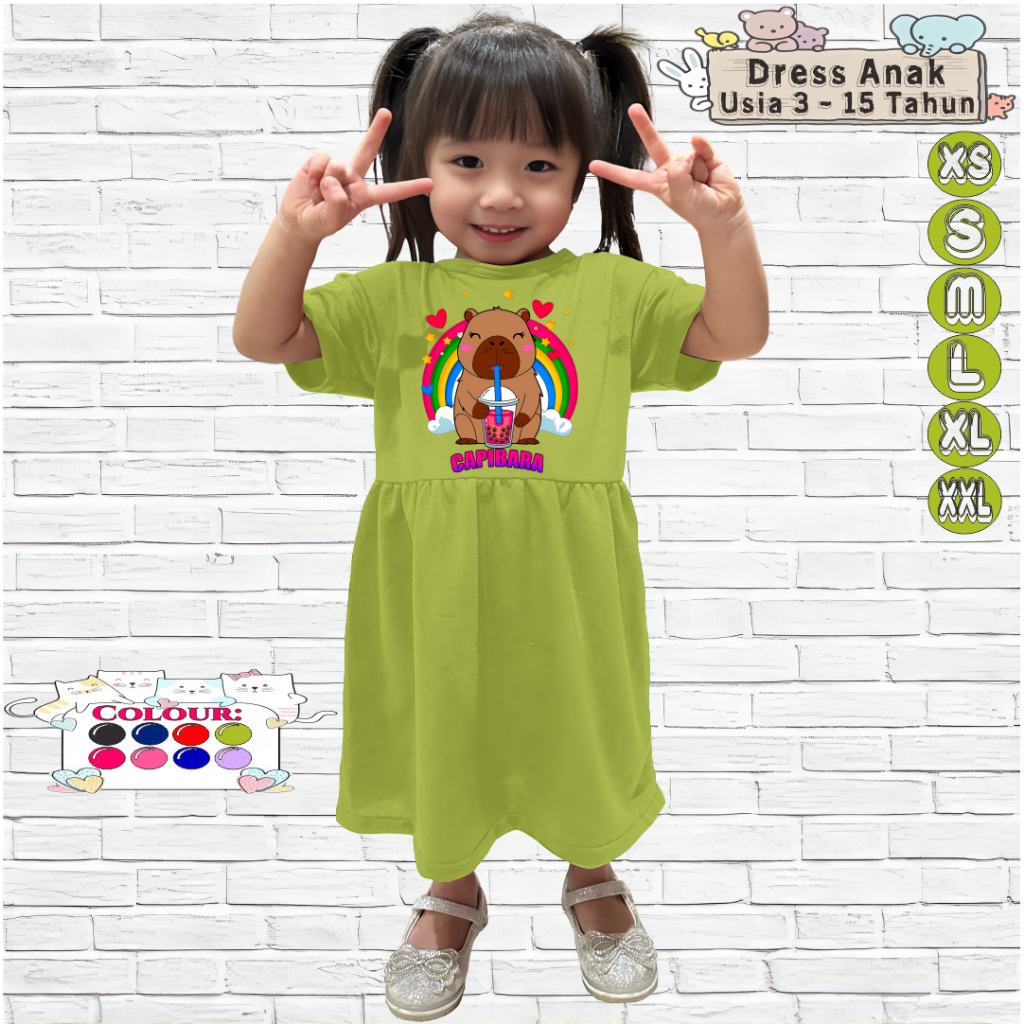 Dress Anak Perempuan 3-15 Tahun Motif CAPIBARA