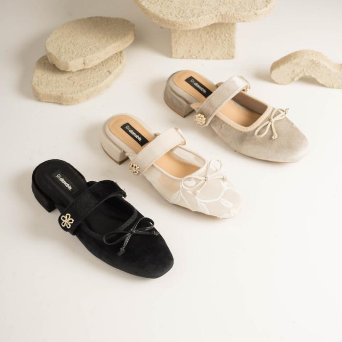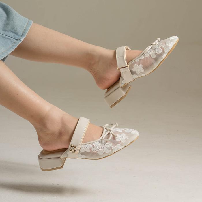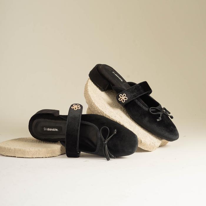 DIANABLE - LYRIA HEELS MULES SHOES WANITA (BLACK - BEIGE - LACE) - BLACK, 37