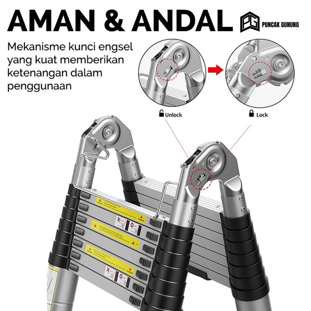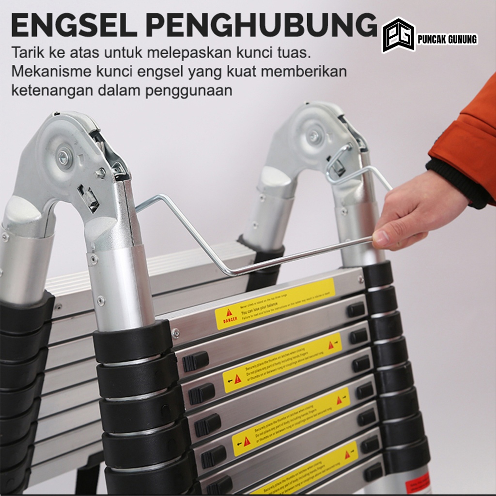 Tangga Lipat Aluminium Teleskopik Ganda 4.4M l 5 Meter Double Ladder Portable Kokoh - T2A1/T2B1/T2C1